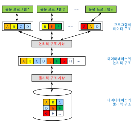 2. 물리적 데이터 독립성 : DBMS의 데이터베이스의 물리적 구조의 변경이 데이터베이스의 논리적 구조에도 영향을 주어서는 안된다.