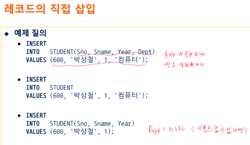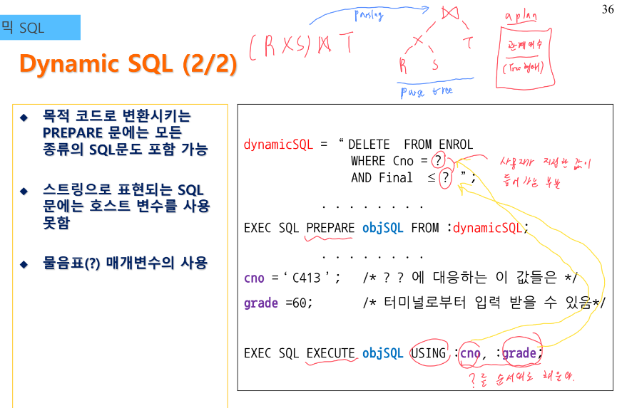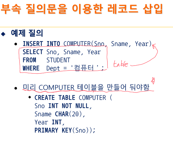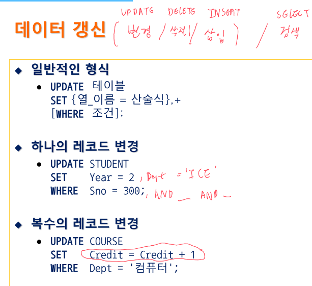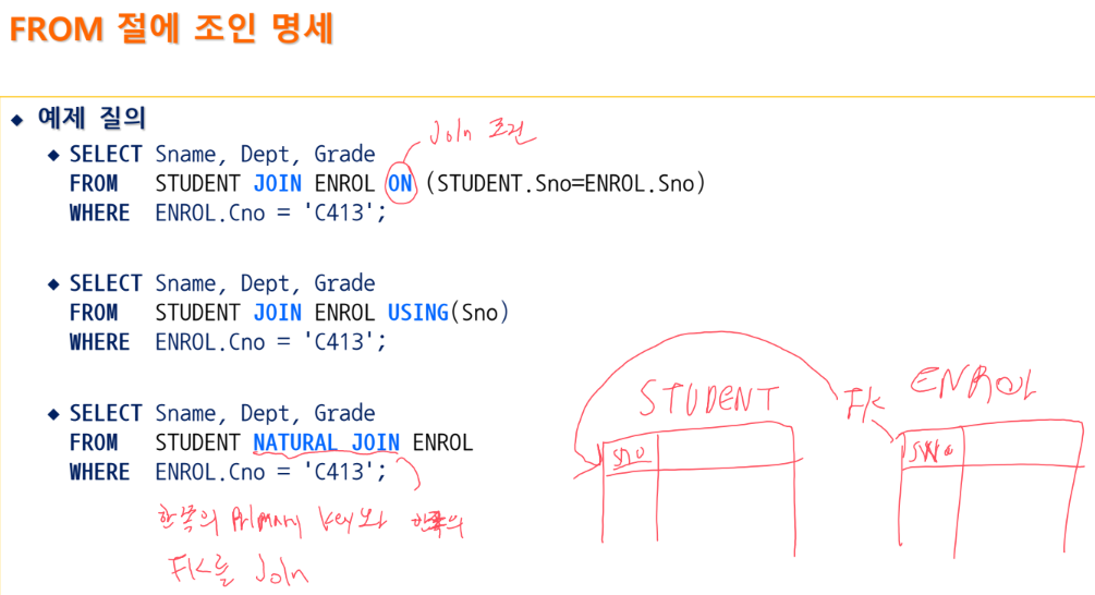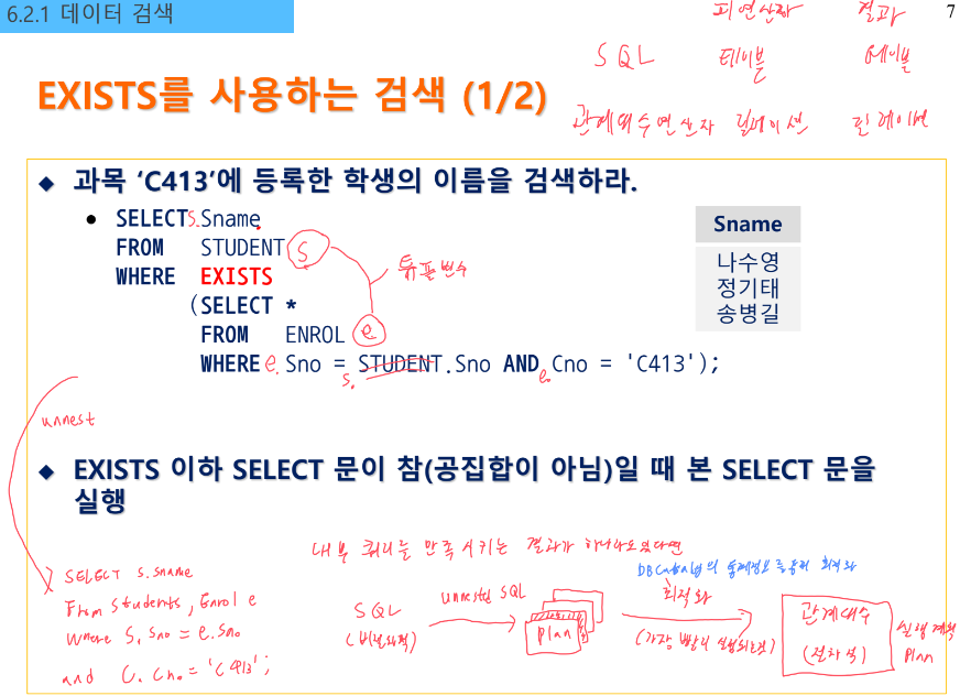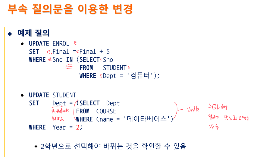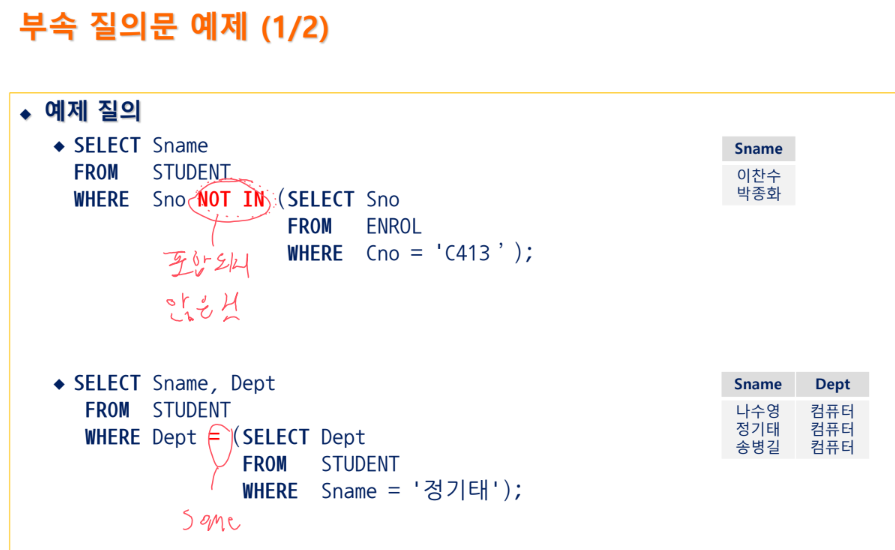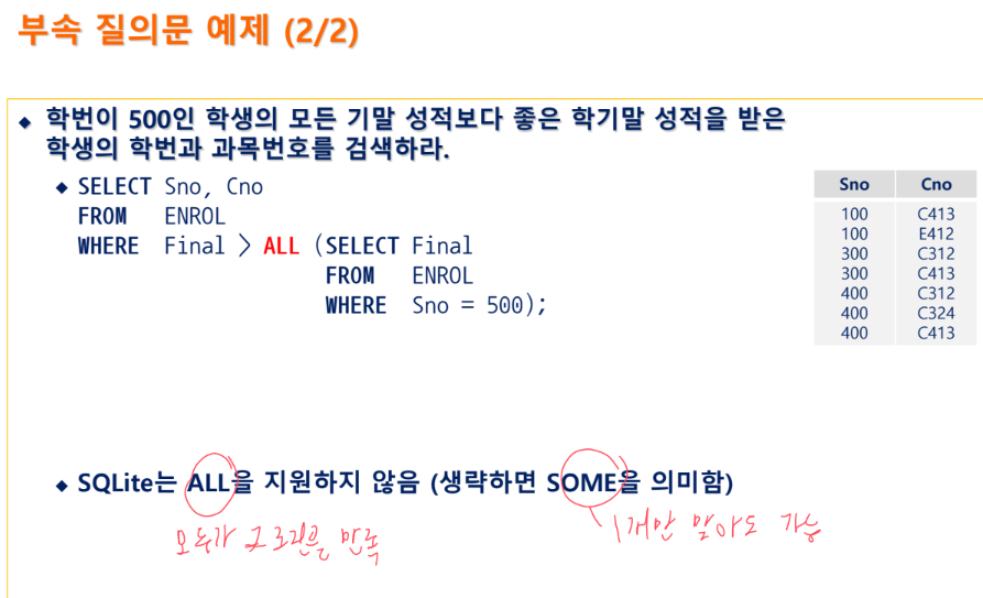 - 종합 데이베이스 언어 역할 : 단순히 검색만을 위한 질의어가 아님 (유저 생성 / 질의 ...)