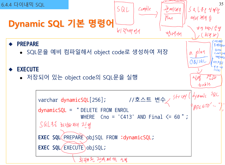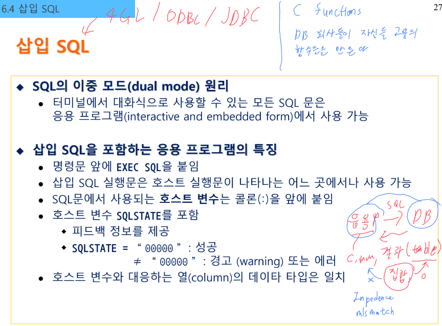 - 데이터 정의어(DDL) / 데이터 조작어(DML) / 데이터 제어어(DCL) 의 기능 모두 제공