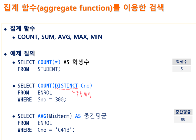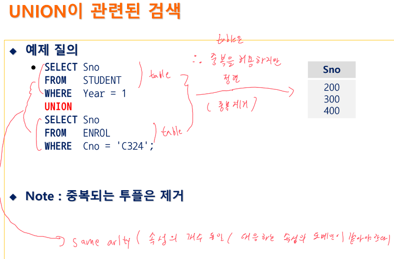 - DISTINCT를 통해 집합과 같은 결과를 만들 수 있다.