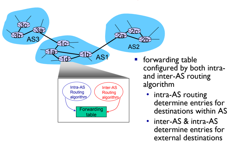 - 서로 다른 AS의 라우터는 다른 내부 도메인 라우팅 프로토콜을 실행할 수 있습니다.