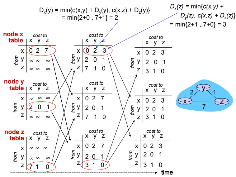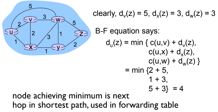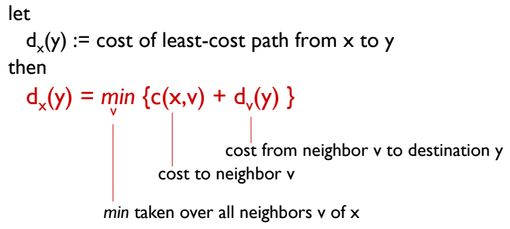 Dx(y) ← minv{c(x,v) + Dv(y)} for each node y ∊ N
