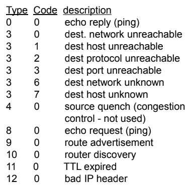 - ICMP 메시지: 유형, 코드 및 오류를 발생시킨 IP 데이터그램의 첫 8바이트를 포함합니다.