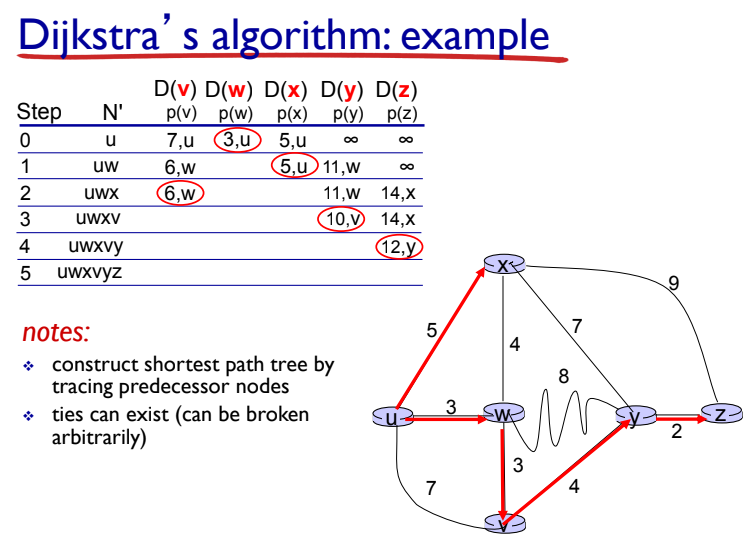 Node = 라우터의 집합 = { u, v, w, x, y, z }