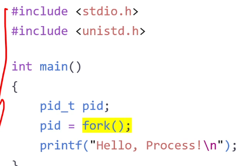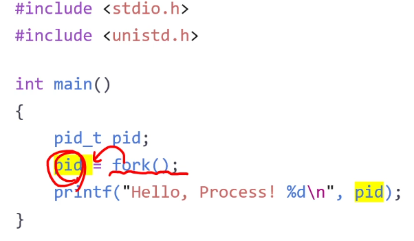 - 두 포르세스들은 계속해서 실행된다. (fork() 시스템 콜 이후에 지시들을)