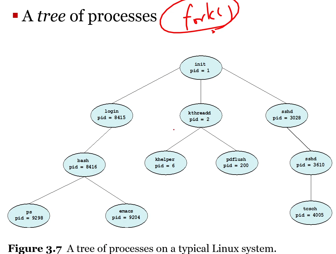 - 새로운 프로세스가 fork() 시스템 콜로 생성된다