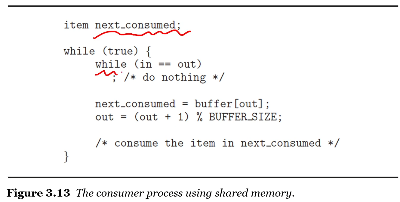 shared memory는 생산자와 소비자 프로세스들에의해 공유되는 메모리 영역이다.