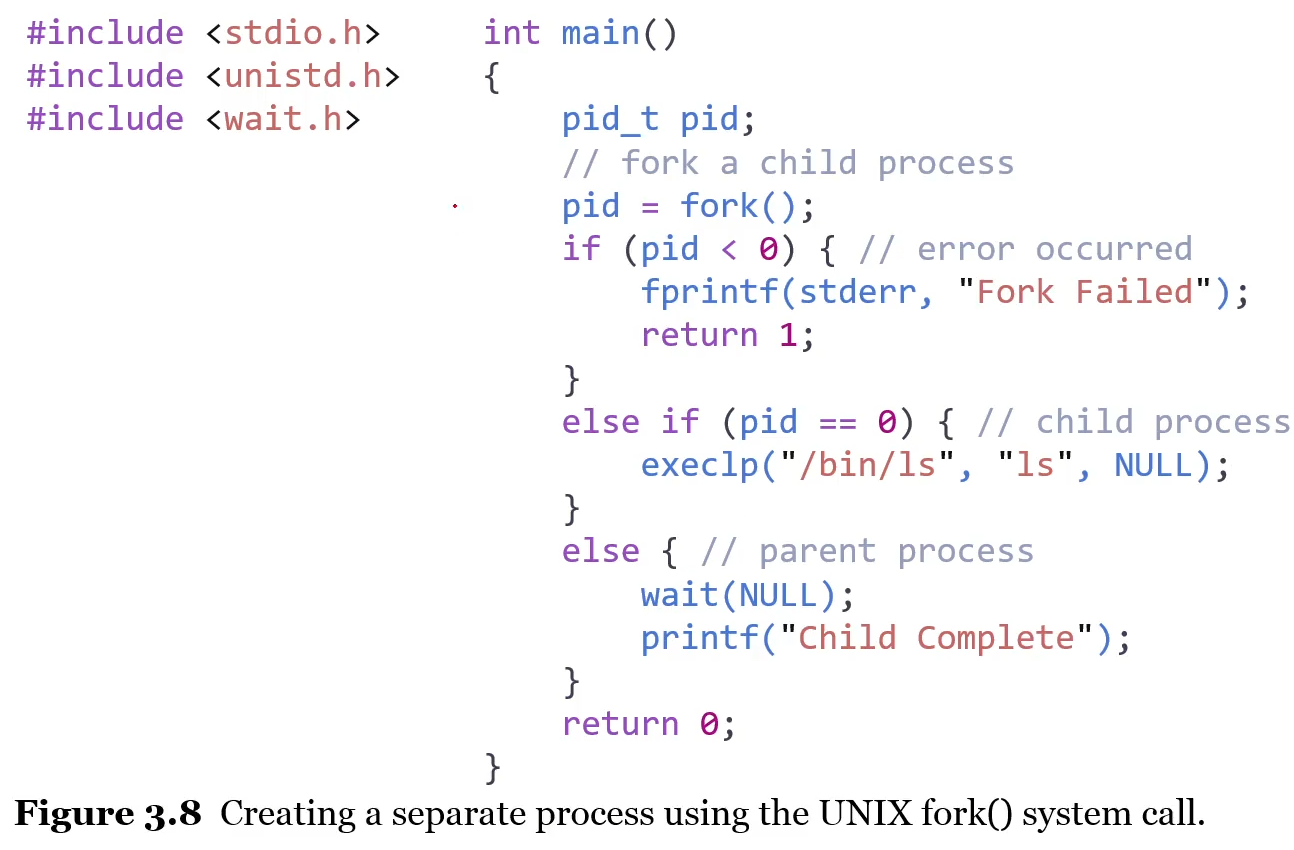 - 차이점 : fork()의 리턴코드는 자녀 프로세스에게 zero이다. 자녀 프로세스의 nonzero pid는 부모 프로세스에게 반환된다.