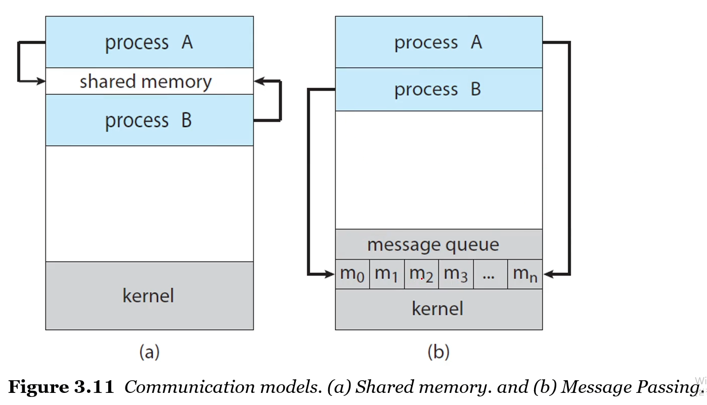 Cooperating process들은 IPC 메커니즘을 필요로 한다. 이는 상호간의 데이터를 데이터를 주고받는 교환을 가능하게 한다.