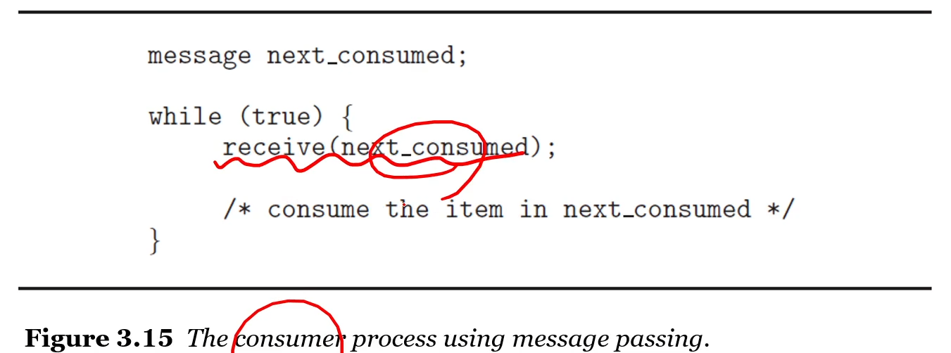 Communication Links : P와 Q라는 두개의 프로세스가 소통하기를 원한다면, 그들은 서로 SEND와 RECEIVE메세지를 주고 받아야 한다.
