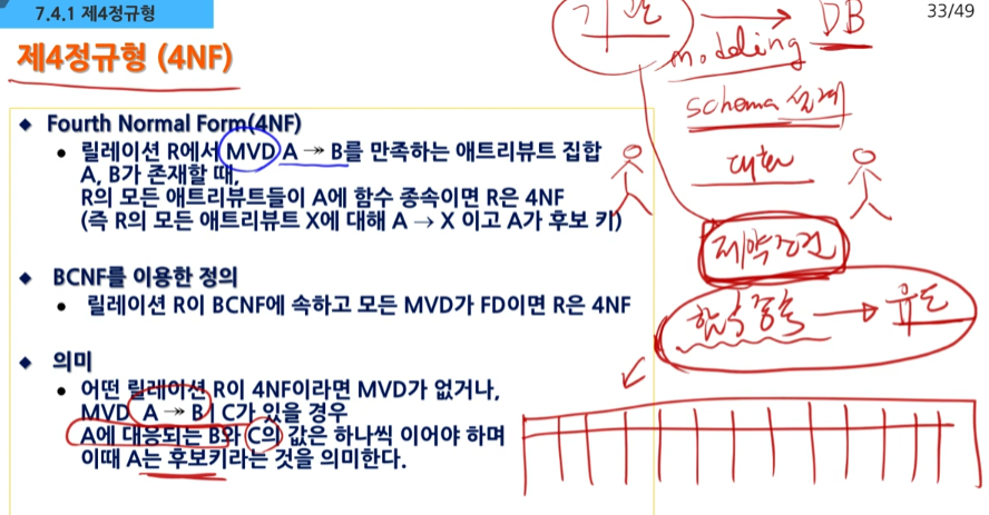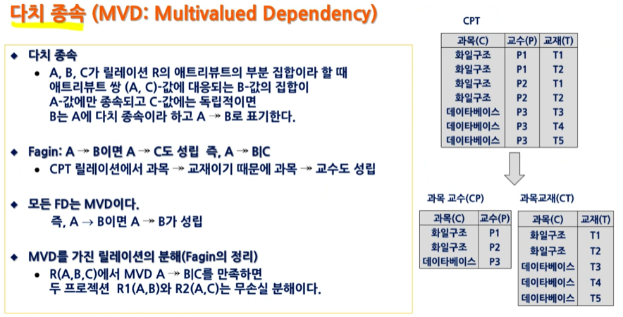(5) 4NF : MVD(다치 종속)를 가진 릴레이션을 프로젝션