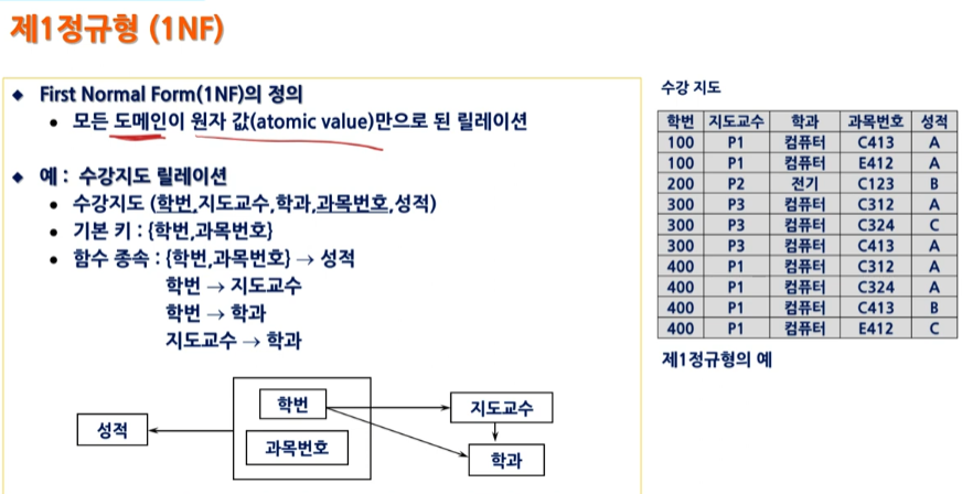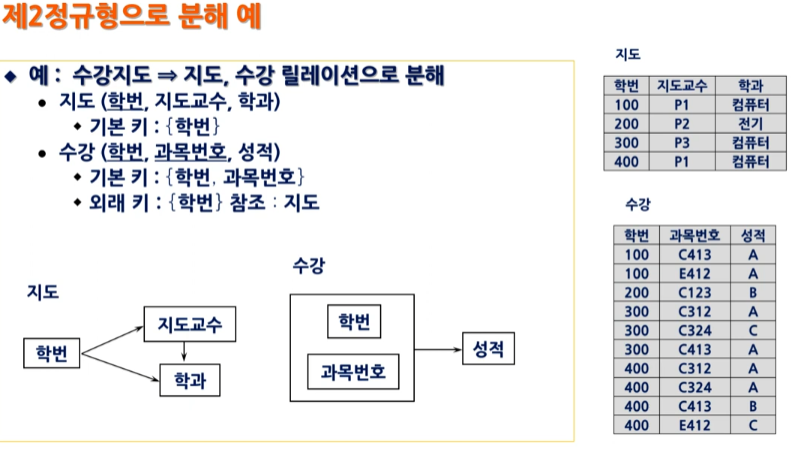 지도 : 1NF에서 학번 지도교수 학과로 프로젝션