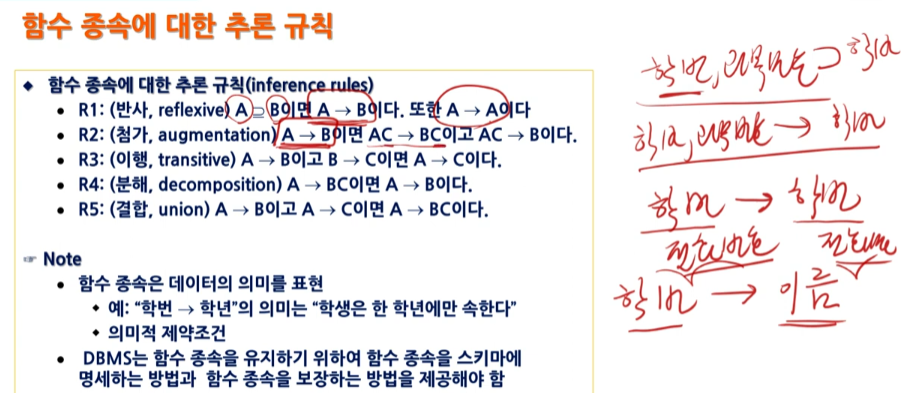 - 이 함수 종속을 통해 새로운 함수종속을 유도 가능