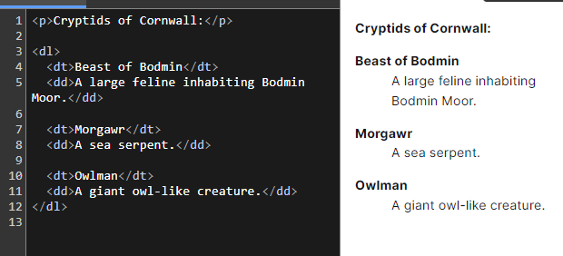 - 주로 용어와 그에대한 설명을 함께 그룹화 하는데 사용된다.
