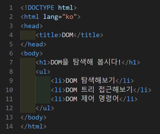 - 노드(node) : 각각의 요소와 속성, 콘텐츠를 표현하는 단위