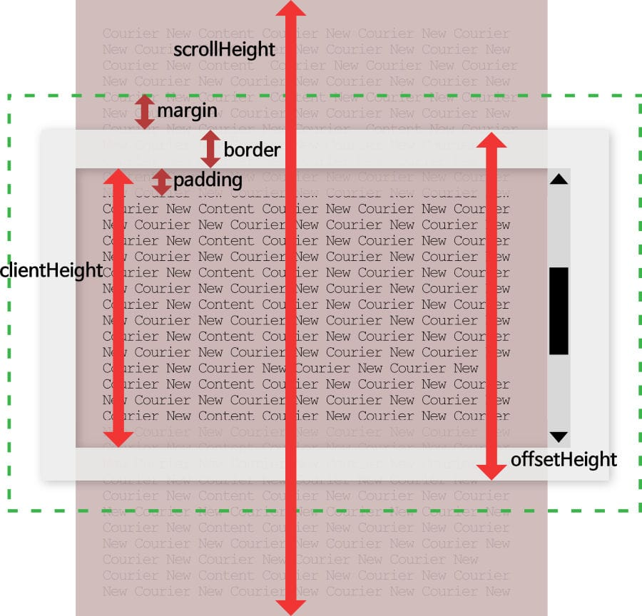- offsetHeight : padding, border 값을 포함한 컨텐츠의 높이 (scrollbar도 포함, margin만 제외)