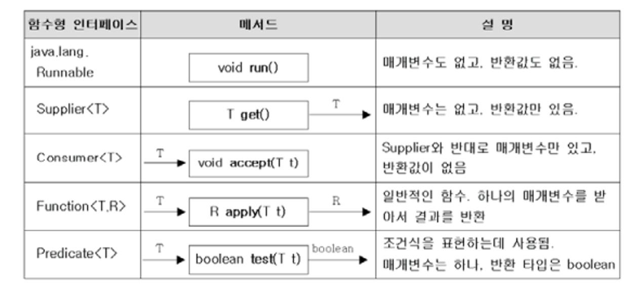 - 함수형 인터페이스 타입의 참조변수로 람다식을 참조할 수 있다.